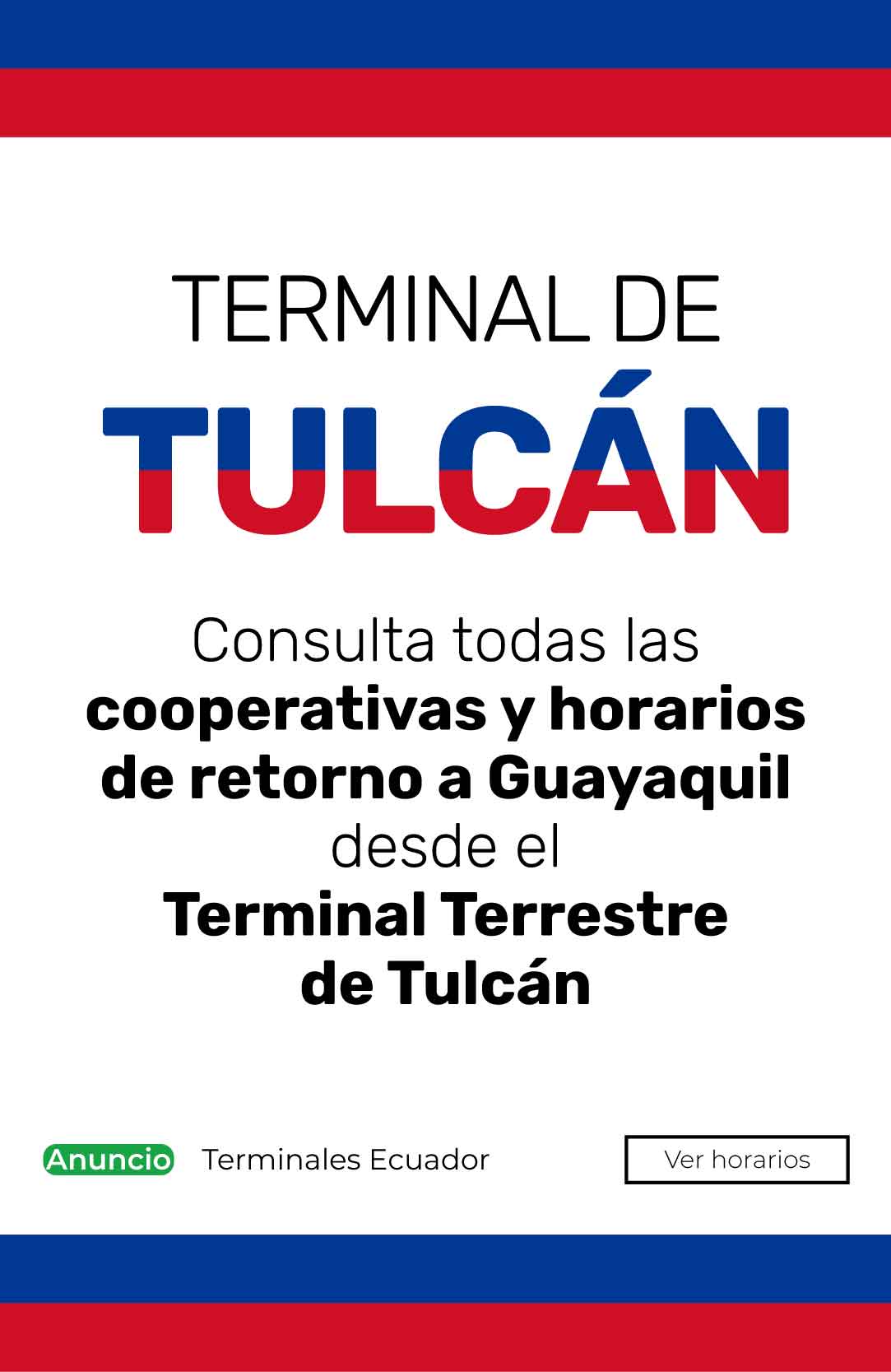 Desde la Terminal Terrestre de Guayaquil, te invitamos a explorar Tulcán con nuestras eficientes opciones de transporte. Nuestras cooperativas te ofrecen un viaje seguro y cómodo hacia esta encantadora localidad. Disfruta de la puntualidad y la confiabilidad de nuestros servicios mientras te sumerges en la rica cultura y belleza de Tulcán. Planifica tu aventura con nosotros y experimenta la comodidad de viajar desde la Terminal Terrestre de Guayaquil hacia Tulcán. ¡Tu experiencia única en esta localidad te espera!